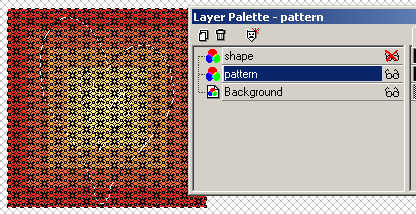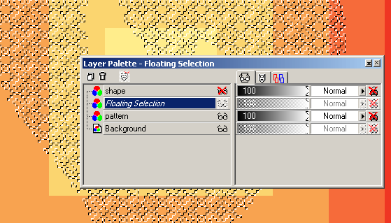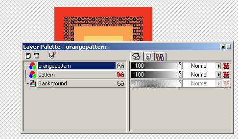 Make another new layer, called orangepattern, and paste the pattern where you want it to go. Voila! we now have a pattern only in that one color. Easy as pie.